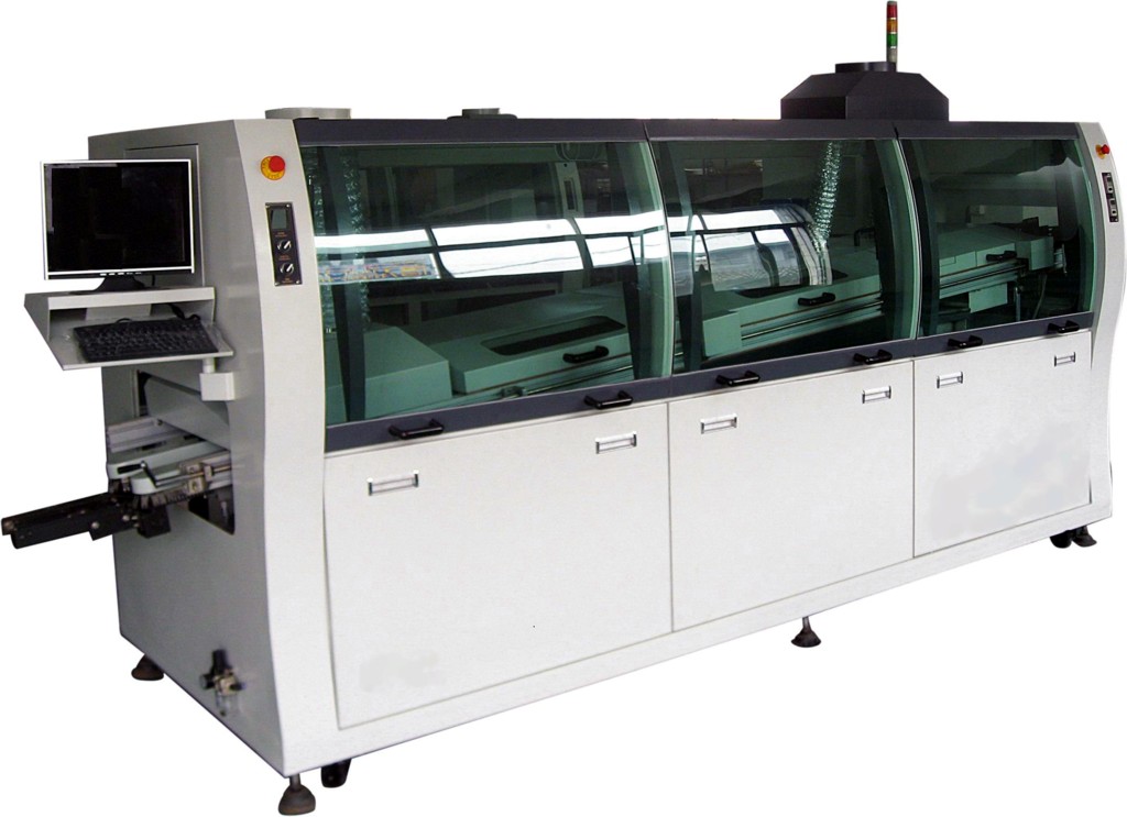 這類車型的應用范圍是中小批量生產單位和科研單位。一般采用線性傳輸方式,效率高,總波峰寬度一般小于300mm,釬焊槽具有中等容量(單波型號一般小于150kg,雙波機型小于200kg),操作系統比微型機更復雜,外觀比微型機更大,可以是臺式機,也可以是垂直機。從用戶使用的角度來看,大多數科研單位都愿意選擇這種型號來取代微機,以便在應用范圍內有更大的選擇空間。